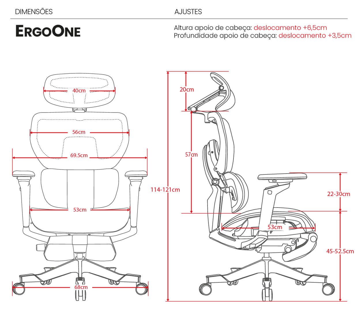 | Mecanismo | Multi-função com Wire Control (ajuste de altura do assento, reclino do encosto e assento deslizante) |