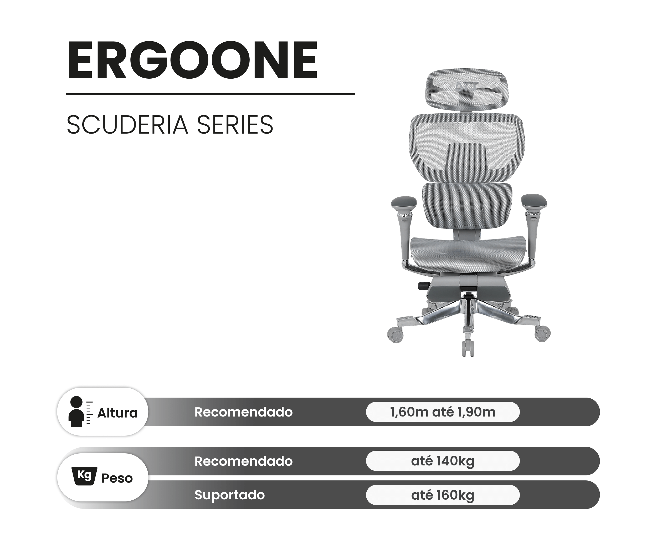 Mais do que suporte, a base de alumínio da ErgoOne é um projeto diferenciado, que oferece silêncio, durabilidade e estabilidade absoluta. O “pad” de apoio proporciona um experiência única de relaxamento nos momentos de pausa ou mesmo suporte para pessoas menores, diminuindo cansaço após longas horas de uso.