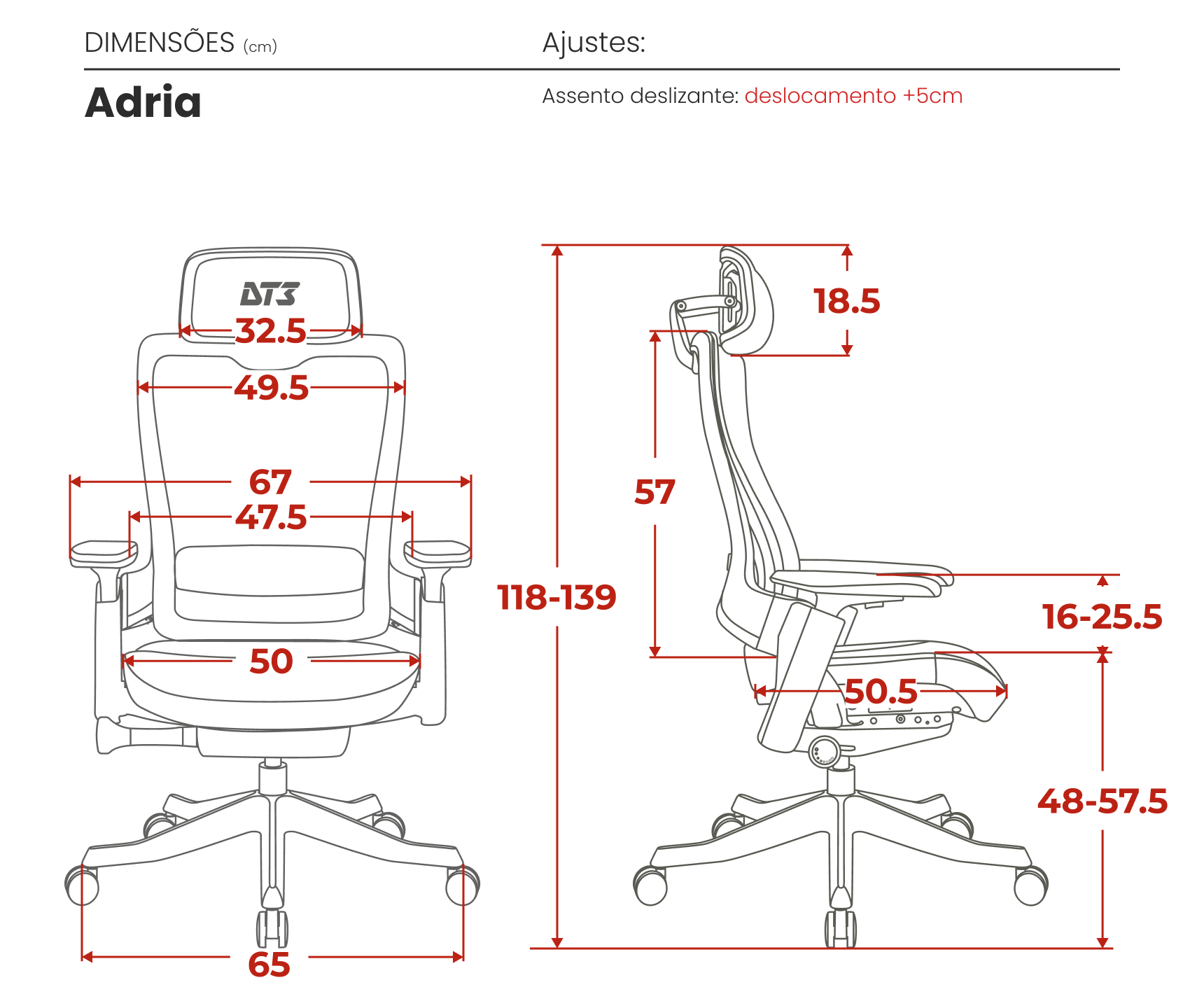 *Durante o reclino, o encosto recua e o assento avança, criando um movimento fluido.