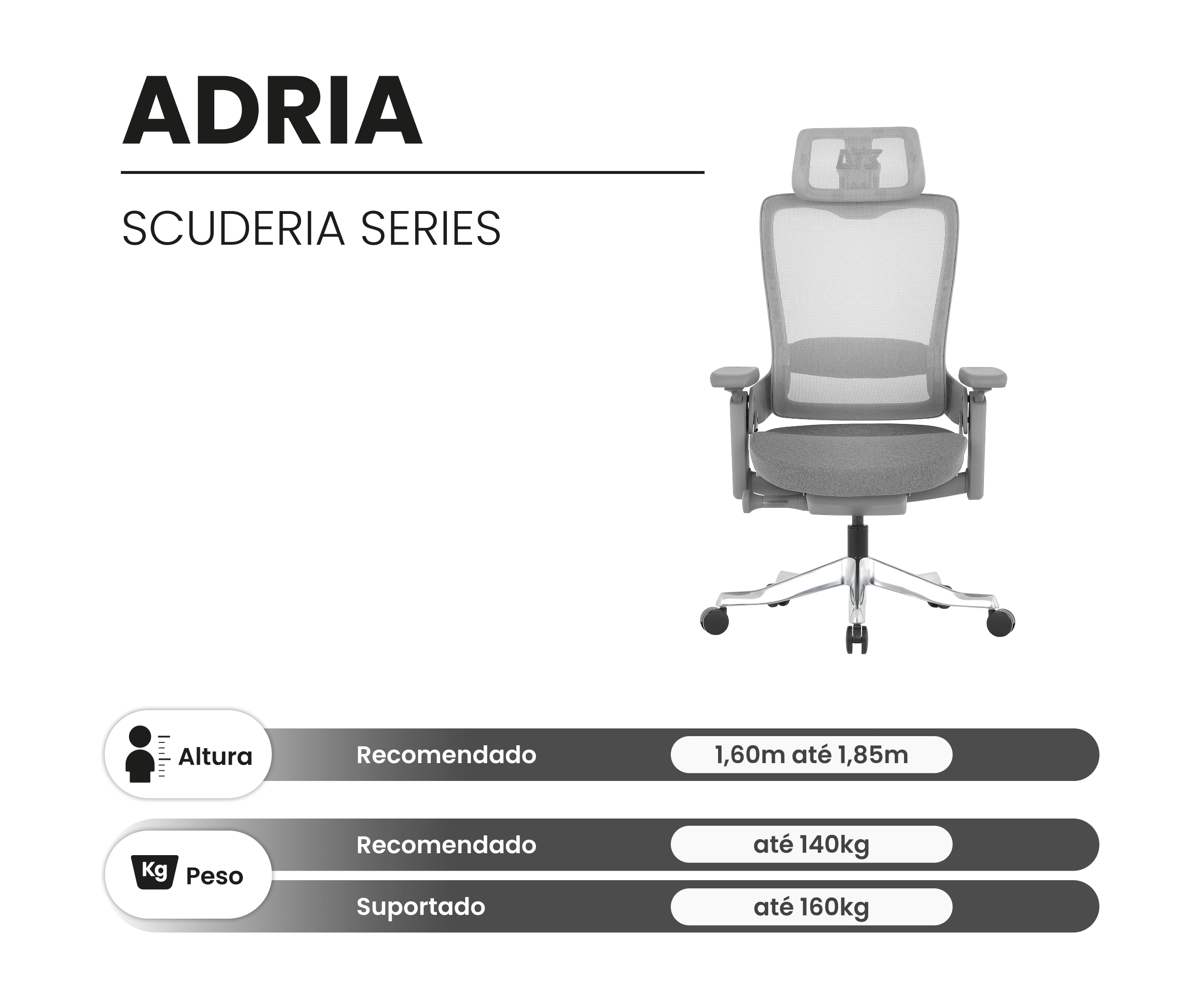 Ideal para atender pessoas de baixa e alta estatura, acompanhando diferentes ritmos, rotinas e atividades.