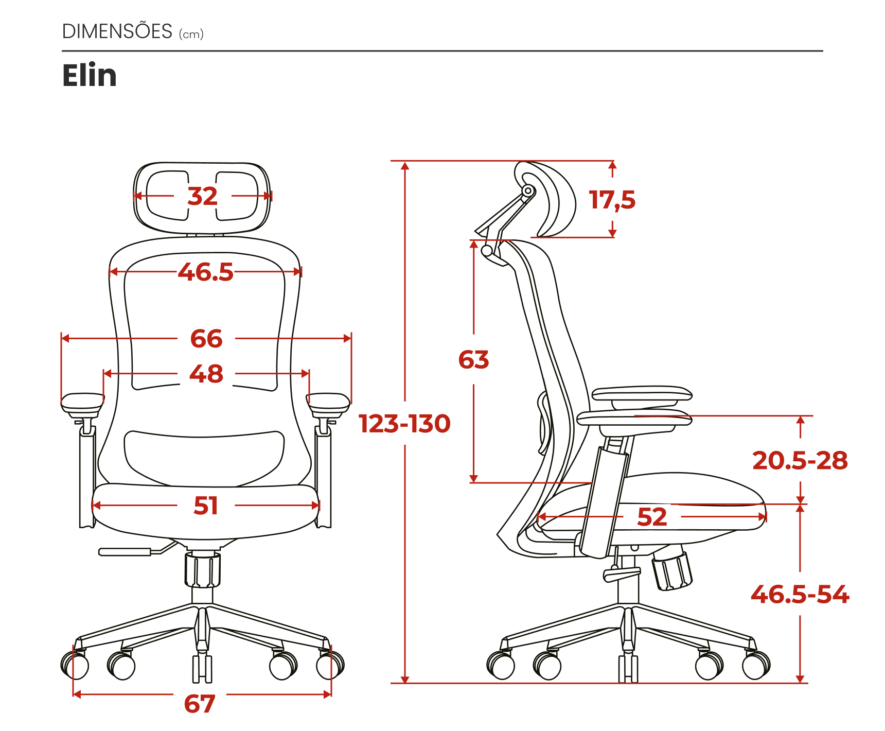 Mecanismo com três posições de travamento e função relax integrada. Ajuste de altura e múltiplos ângulos, que favorece longas horas sentado.