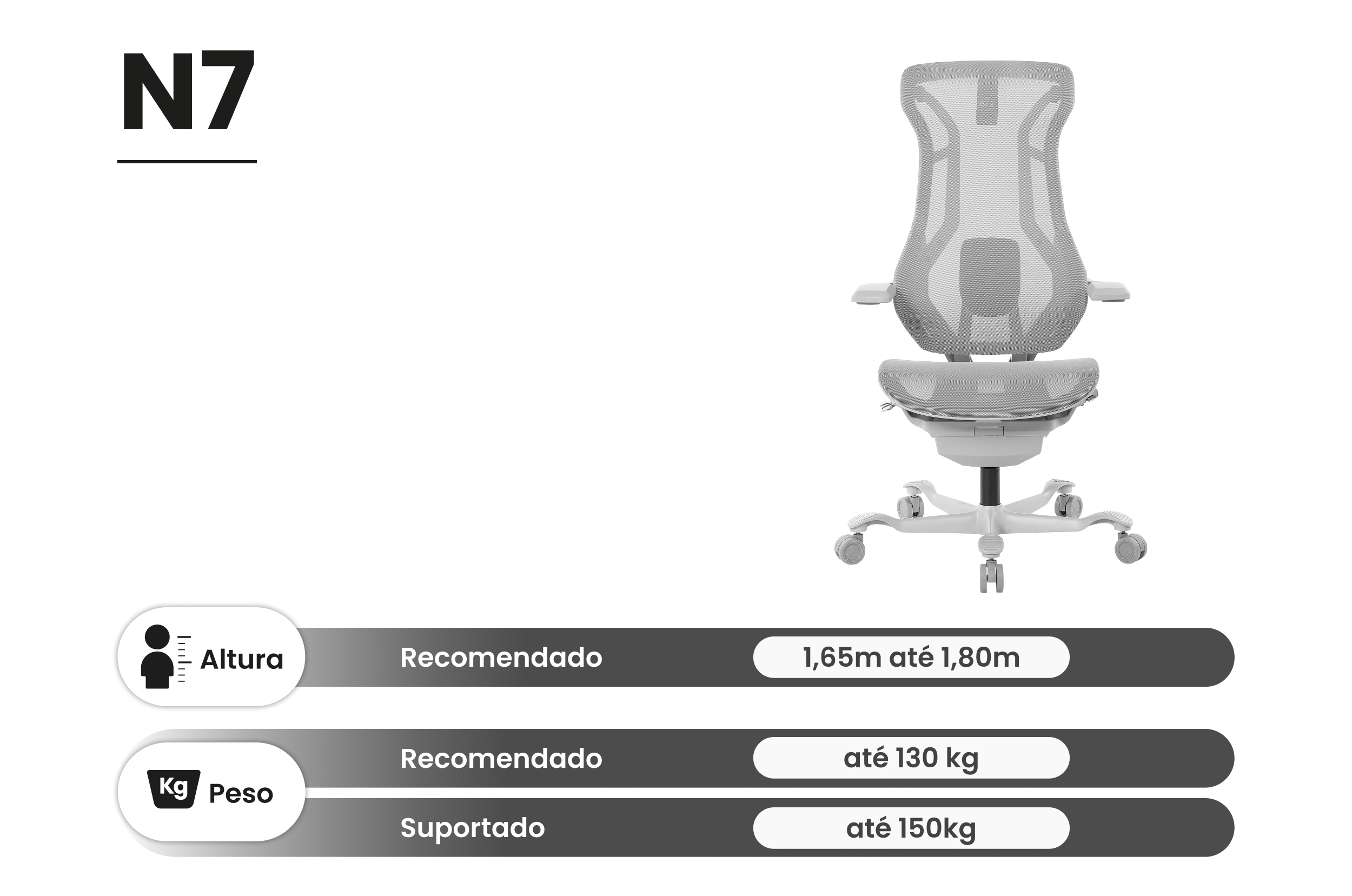 A N7 é a cadeira gamer Ergomesh™ que une conforto adaptável e um design que conecta com diferentes estilos de vida. Feita para quem joga, trabalha, cria ou tudo isso ao mesmo tempo, ela entrega ergonomia com atitude, pensada para todos os tipos de corpo e rotina.