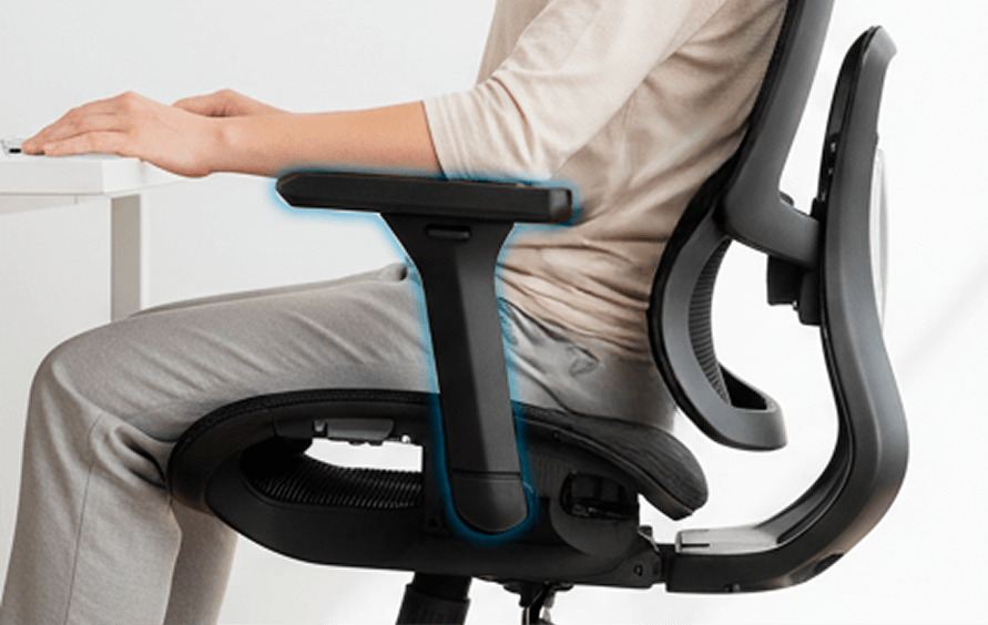 O ajuste de profundidade do assento permite que a cadeira atenda tanto pessoas mais baixas quanto as mais altas, adaptando o apoio das coxas de forma precisa. Esse recurso equilibra a postura, melhora a distribuição do peso e garante ergonomia adequada para diferentes tipos de corpo.