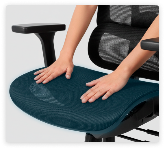 O assento em mesh elástico oferece uma sensação superior em contato com a pele, unindo alta durabilidade e qualidade superior. Sua elasticidade permite suporte contínuo e adaptabilidade sem perder firmeza. Mesmo sendo em mesh, a estrutura do assento foi desenvolvida para garantir resistência.