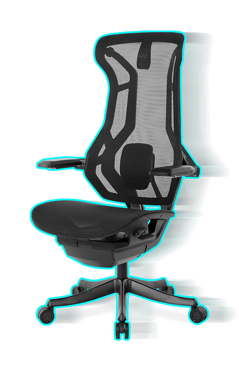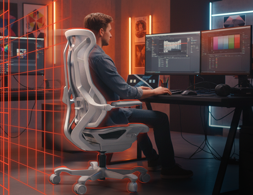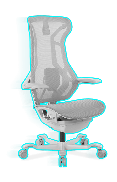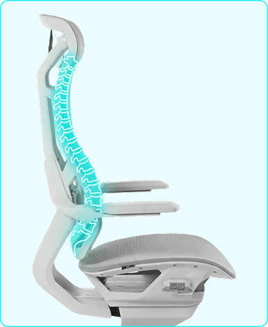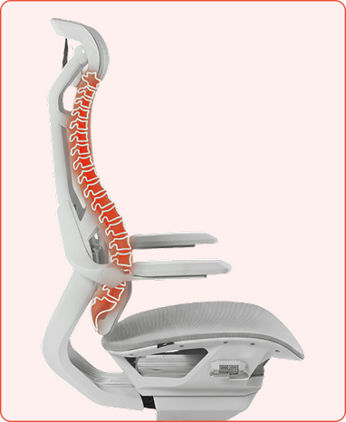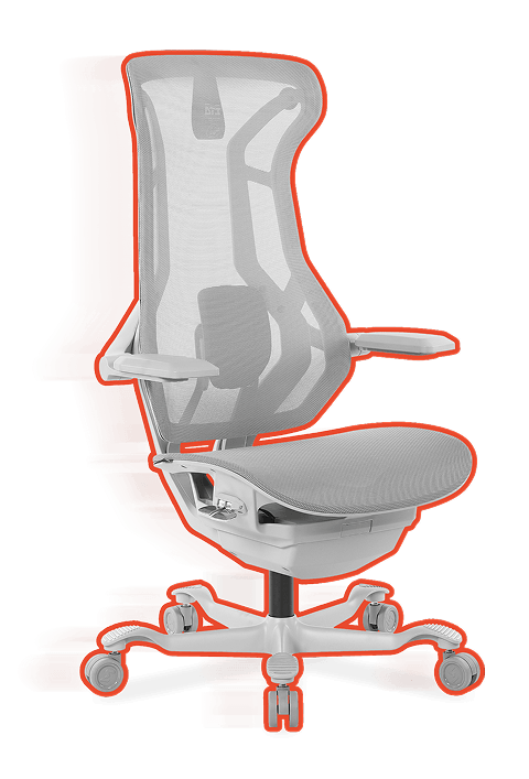 Reclino com encosto único que se adapta ao corpo para diferentes biotipos e atividades, oferecendo conforto contínuo e suporte ergonômico.
