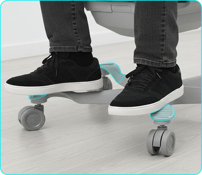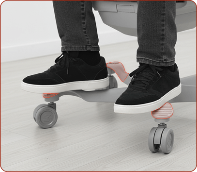 Estrutura com apoio de pés integrado à base, favorecendo posições confortáveis para uso prolongado.