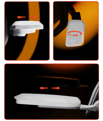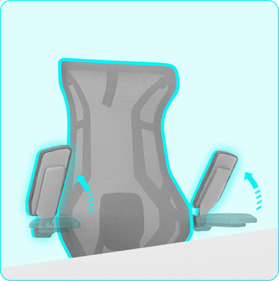 Apoio de braços 3D com elevação em 90º ideal para tocar instrumentos, desenhar ou criar sem limitações.