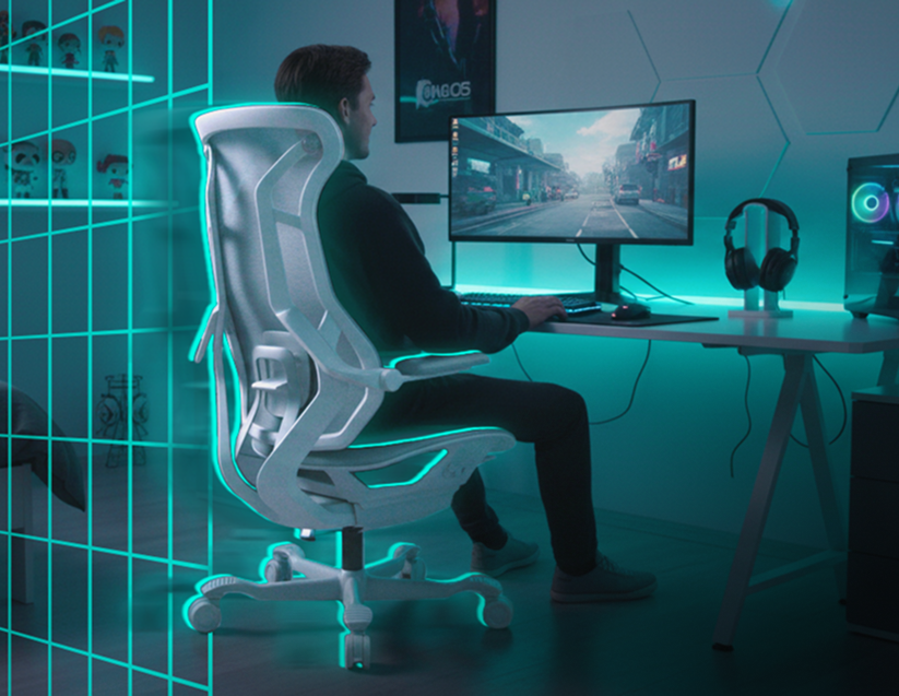Conforto que se adapta, design que conecta. Feita para quem joga, trabalha, cria ou tudo isso ao mesmo tempo. Ergonomia gamer com atitude para todos os tipos de corpo e rotina.