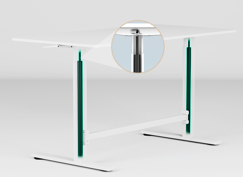 Sistema com cilindro pneumático: maior suavidade na elevação do tampo da mesa Ergo.