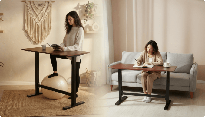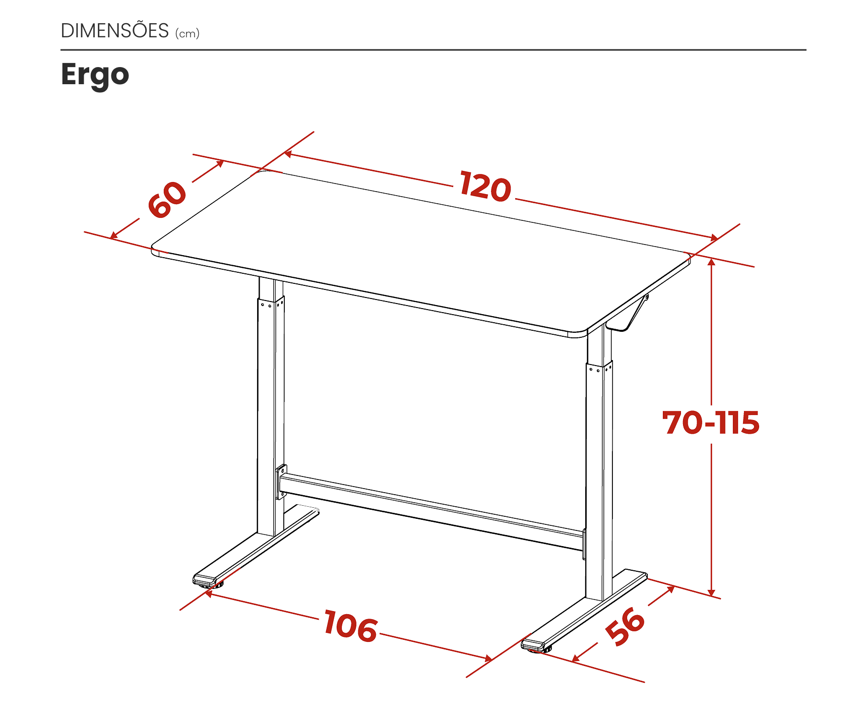 Projetada para adaptar-se à rotina com praticidade, a mesa Ergo possui posições de altura personalizadas, acionadas de forma rápida e intuitiva.