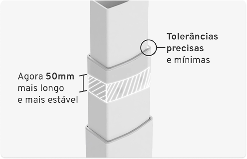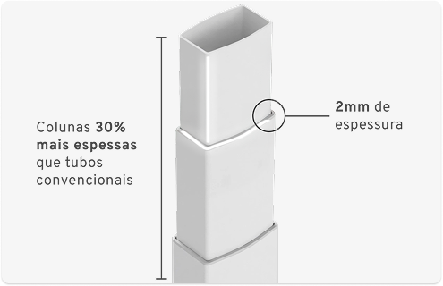 Estrutura com espessura mais grossa e formato oval, garantem estabilidade máxima, mesmo em alturas elevadas.